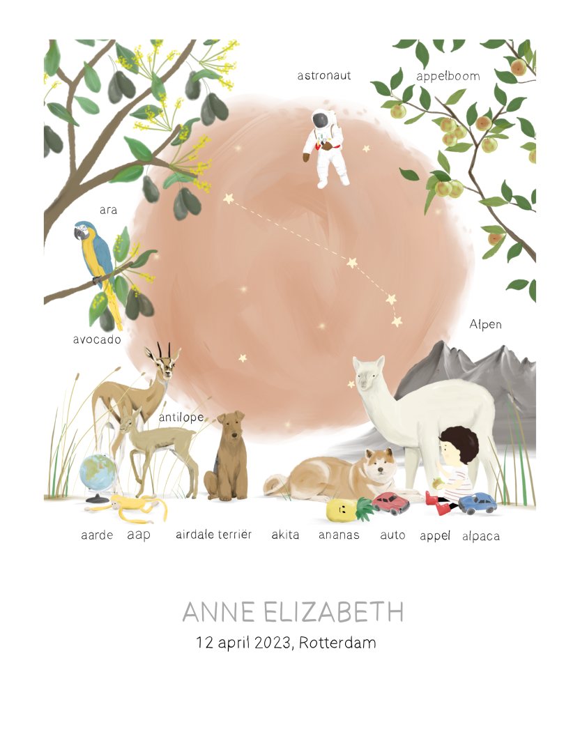 Jouw geboorteprint wordt dan gemaakt met de letter van het alfabet waarmee de naam van het kindje mee begint. We lijsten hem voor je in of we versturen de poster in een steviger kartonnen doos als je hem zonder lijst wil. De lijst komt inclusief met een passe-partout. Geef jij deze geboorteposter kado? Dan kun je dit aangeven in het tekstvak waar je ook je personalisatie opgeeft. Wij zullen je bestelling dan inpakken voor je!